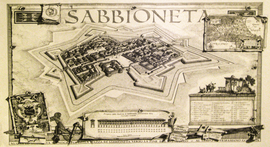 Die befestigte Idealstadt Sabbioneta gehört zu den ersten ihrer Art in Europa. Gleichzeitig war dies die erste autonome Stadtgründung der Renaissance und eines der ambitioniertesten urbanistischen Experimente der europäischen Spätrenaissance. In nur 35 Jahren, zwischen 1556 und 1591, transformierte Vespasiano I. Gonzaga Colonna eine bescheidene mittelalterliche Siedlung in eine befestigte Idealstadt, die sowohl als militärisches Bollwerk als auch als humanistisches Zentrum konzipiert war.