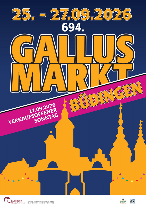 From 25 to 27 September 2026, the fortress town of Büdingen will be transformed into a colourful marketplace: For the 694th time, the Gallusmarkt invites you to three days full of music, culinary delights and socialising. Over 100 market stalls, varied entertainment and many programme highlights make this traditional festival a crowd-puller in the region.